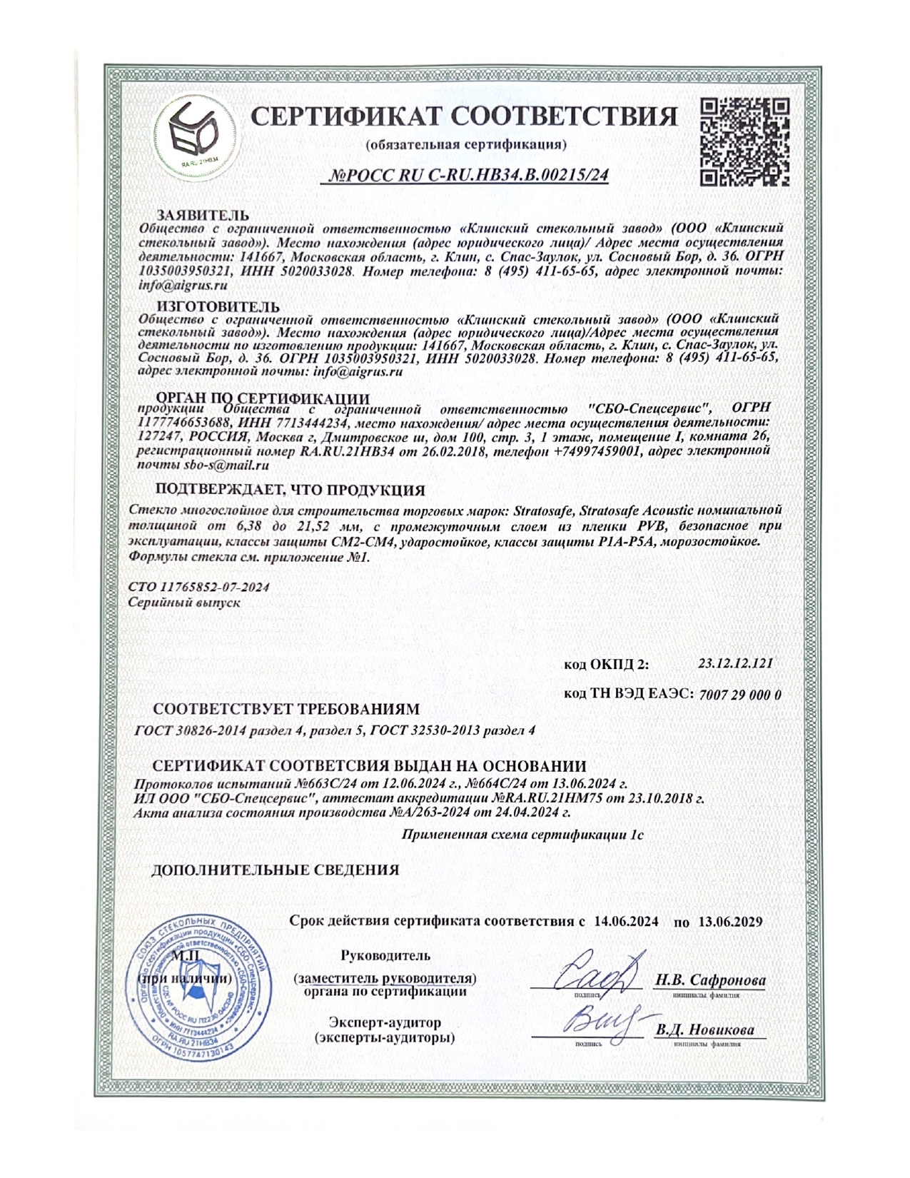 Сертификат Стекло Stratosafe, Stratosafe Acoustic_стр.1