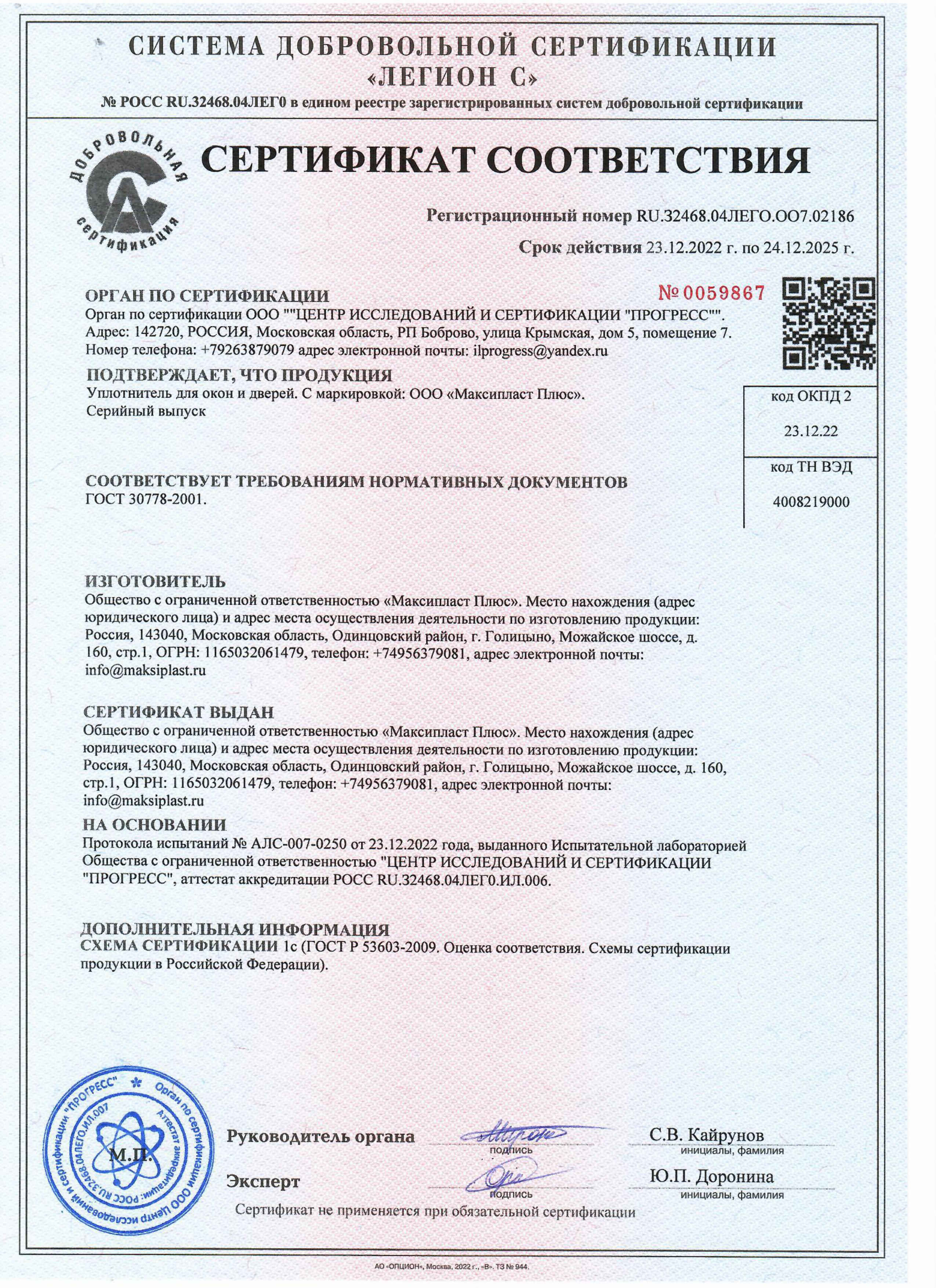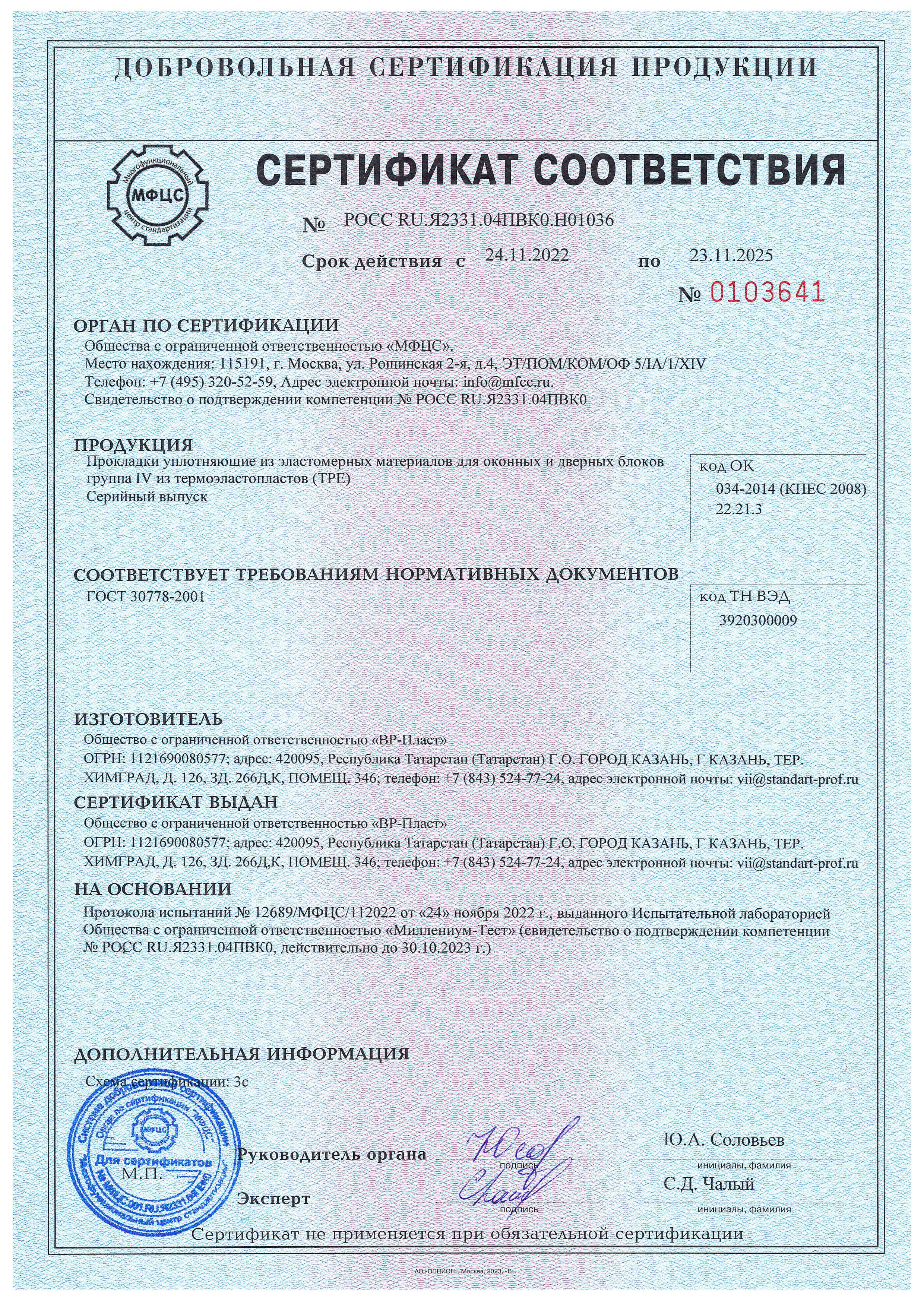 Сертификат прокладки уплотняющей для оконных и дверных блоков, 18.10.2024