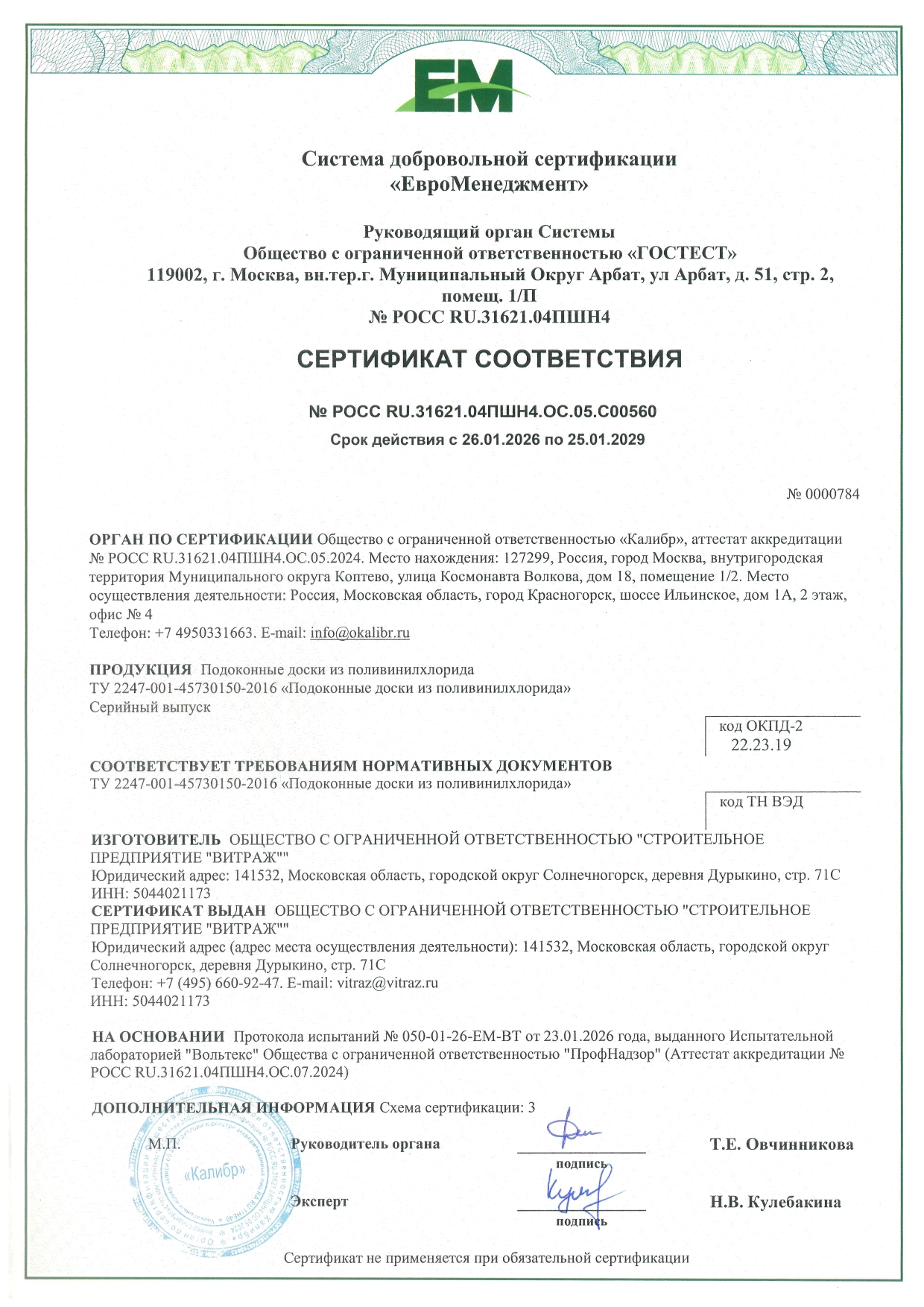 Сертификат соответствия, сэндвич панели ПВХ 28.11.2027